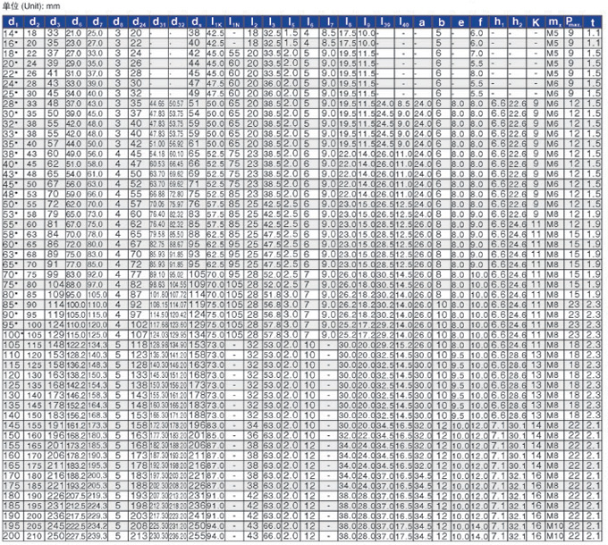 H7F帶螺紋泵 d1 max. 100mm; Axial movement ±0.5mm H75F d1 =28…200mm 軸向竄動(dòng)量 d128…55mm=±2mm d158…100mm=±3mm d11088…200mm=±4mm